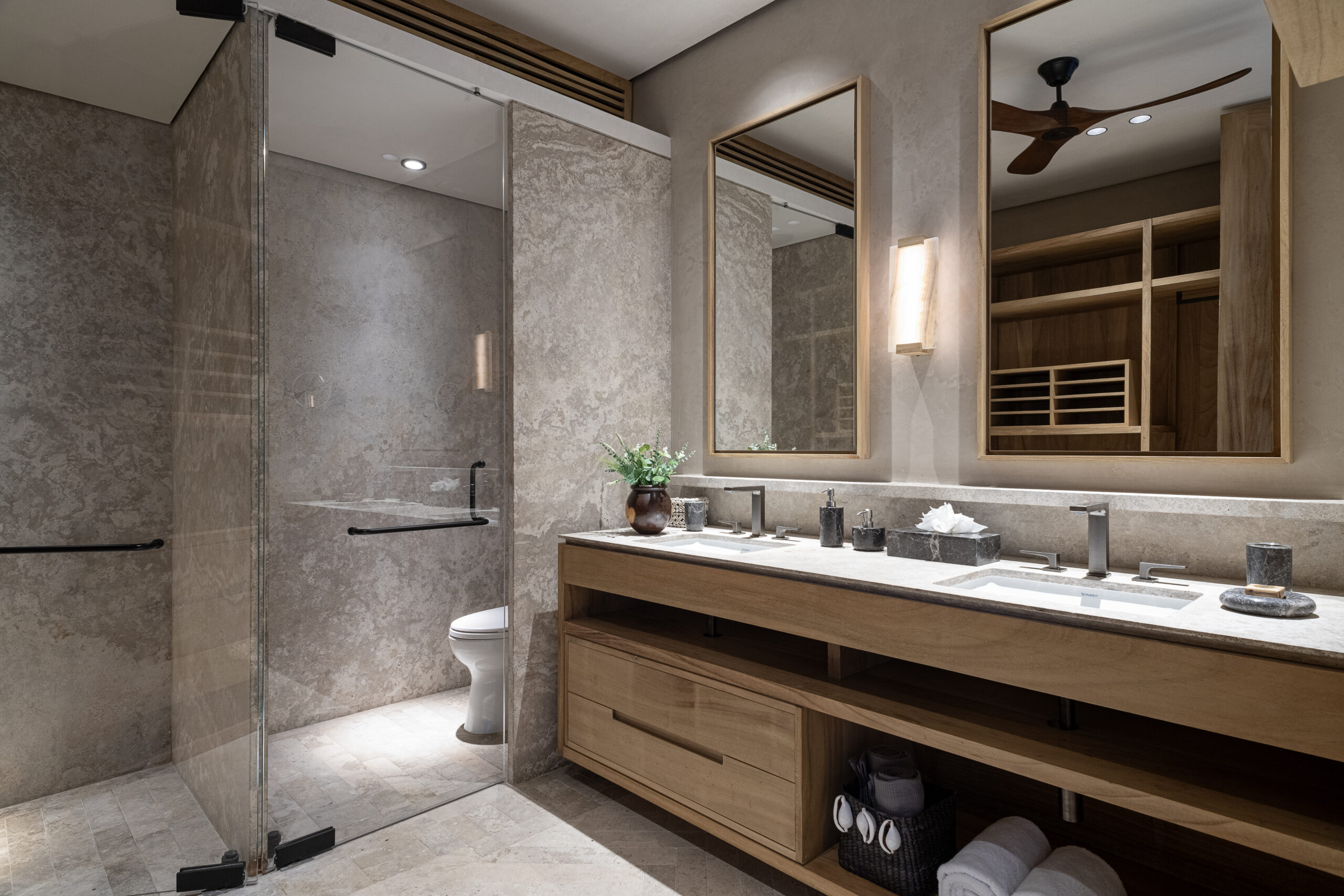 Indulge in luxury with private bathrooms featuring TVs, where you can enjoy a peaceful retreat while staying entertained.